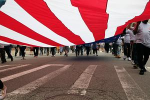The residents of Bay Ridge Brooklyn, carrying the American flag in the local Memorial Day parade. Photograph by © Jessica Chen